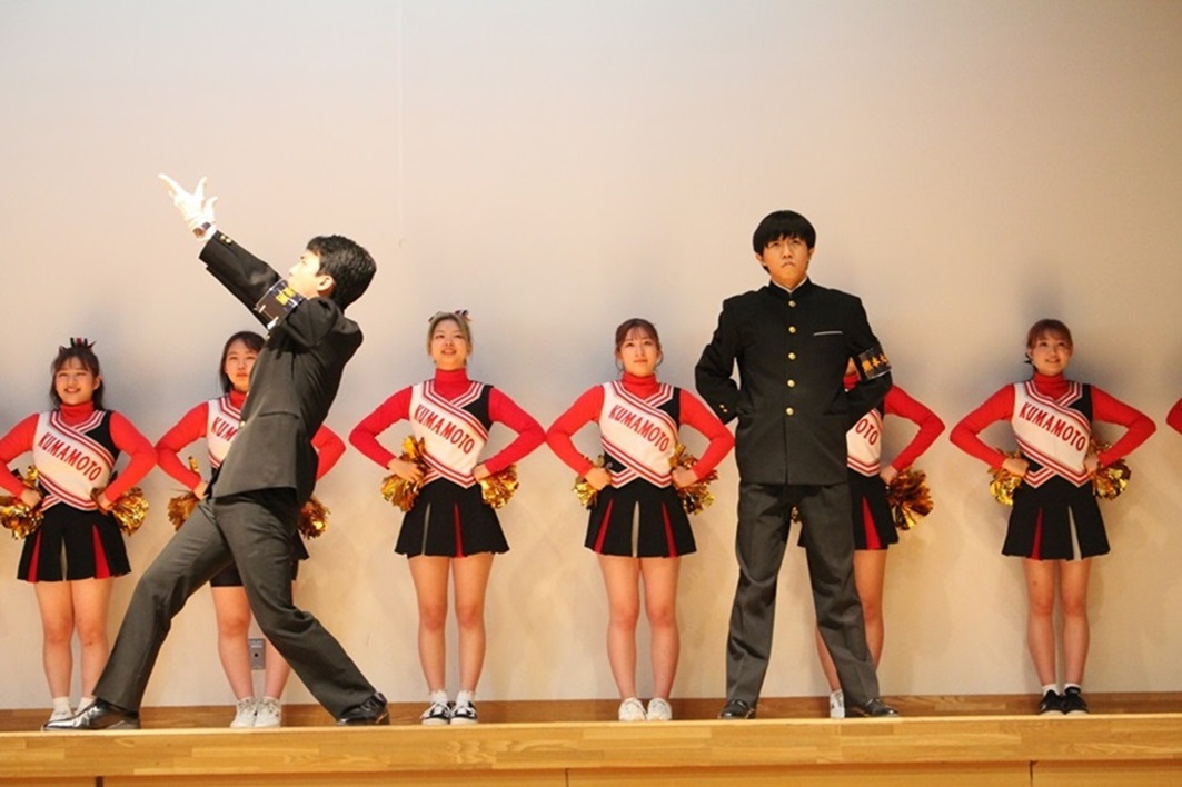 ? 終盤には、恒例となっている応援団のリーダー部とチアリーダー部による演舞が披露され、最後に旧制第五高等学校寮歌「武夫原頭に草萌えて」では参加者も一緒になり大合唱となりました。
