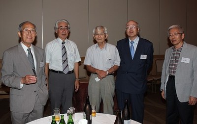 | 講演会終了後に開催された交流会では、まず古島幹雄熊本大学理事(副学長、昭和51年理学部卒)、本島昭男関西連合同窓会会長(関西武夫原会会長、昭和43年法文学部卒)からの挨拶があり、祝辞が述べられました。 | |